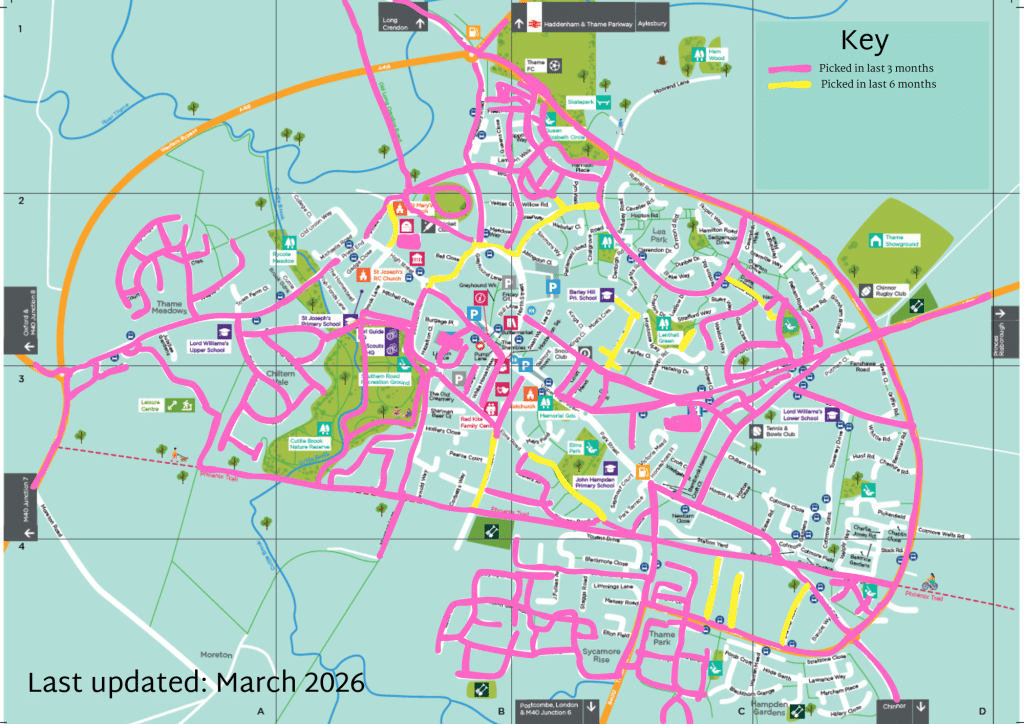 Litter picking in Thame has a long and successful history. ‘Thame Tidy’ days used to be delivered by 21st Century Thame, followed by the creation of Thame Wombles who were established in Thame during the first Covid-19 lockdown in 2020.